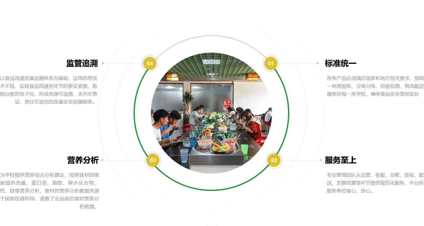 AYX愛游戲校園營養(yǎng)餐聚焦中小學(xué),著眼公共食堂食品安全,依托標(biāo)準(zhǔn)的運(yùn)營與嚴(yán)格的管理,以數(shù)字化食安監(jiān)管平臺為核心,確保食材供應(yīng)實(shí)現(xiàn)全溯源、全檢測, 保障食品安全,用心關(guān)愛學(xué)生每一餐。